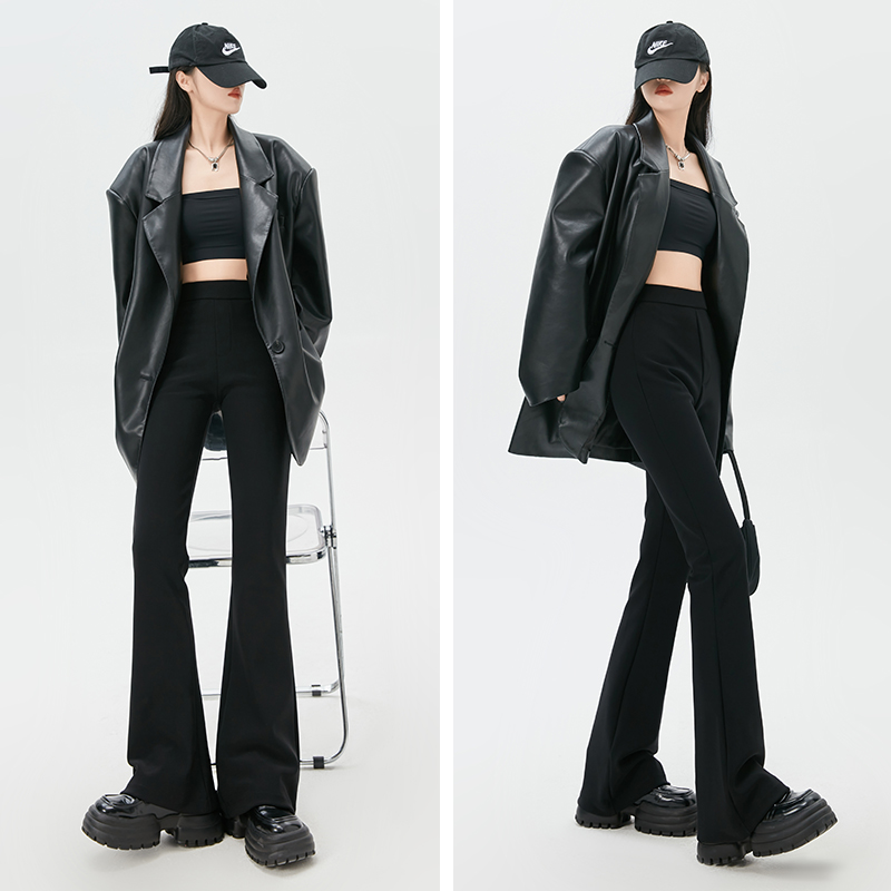拖地马蹄裤 黑色喇叭裤 裤 高腰显瘦垂感开叉微喇西装 女春秋2025新款