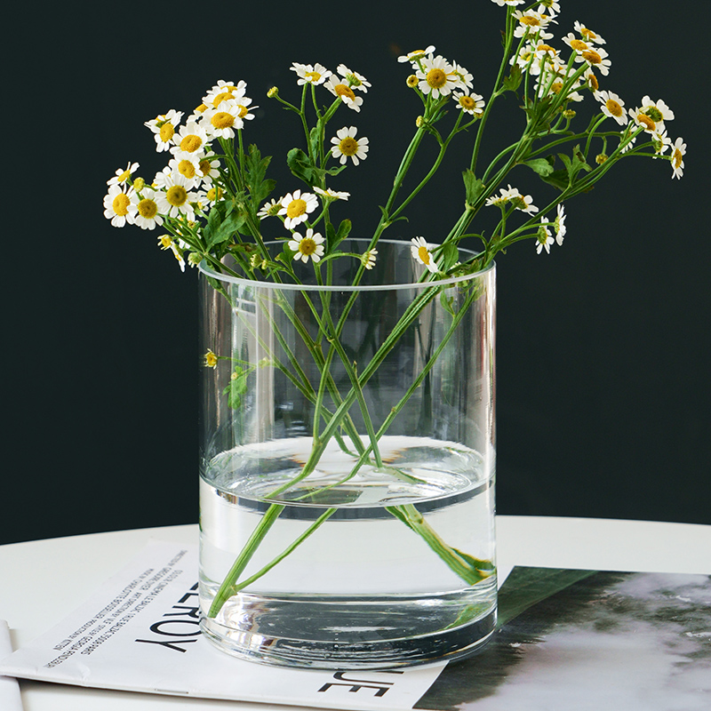 创意水培玻璃花瓶圆筒水养郁金香白掌绿萝植物插花瓶鱼缸装 饰摆件