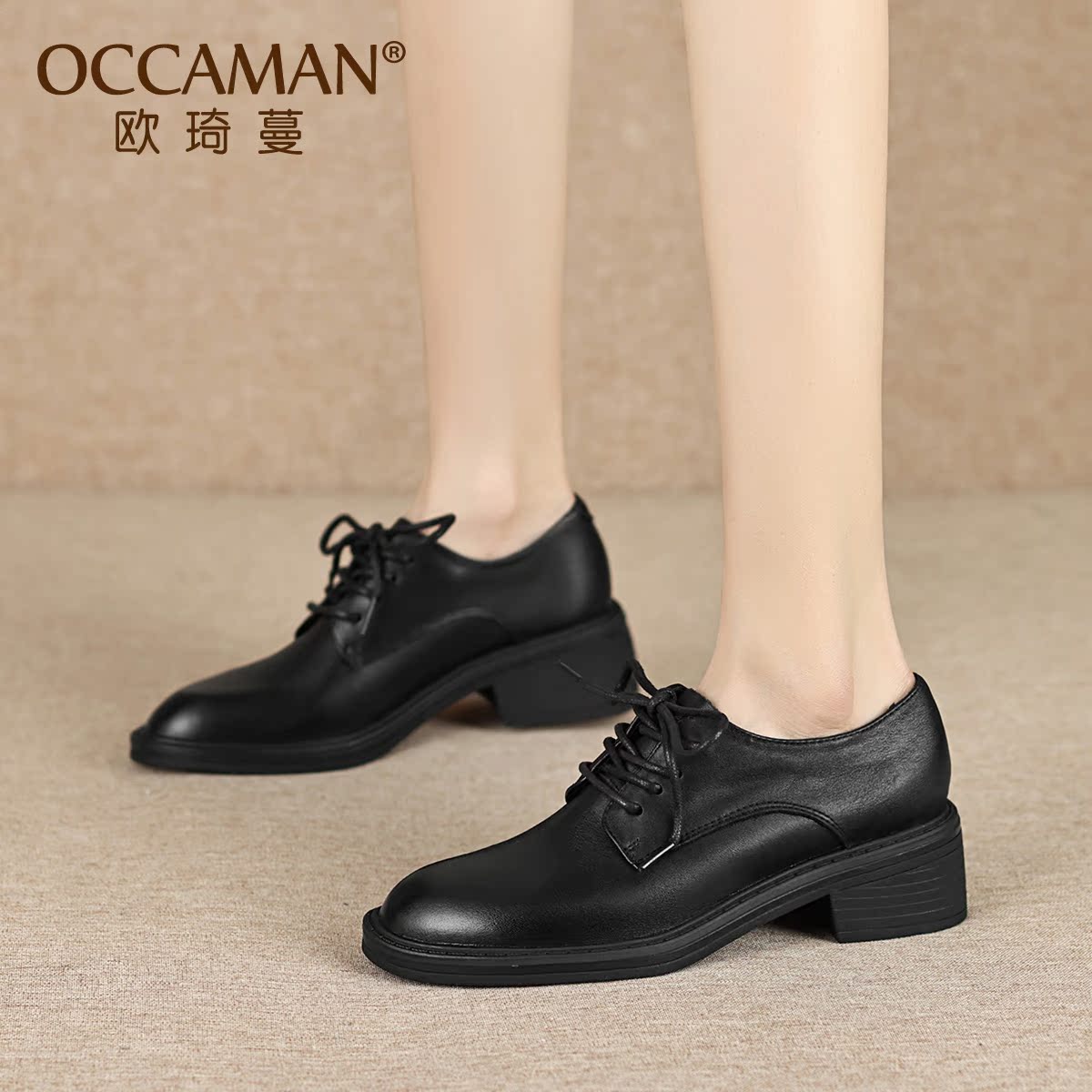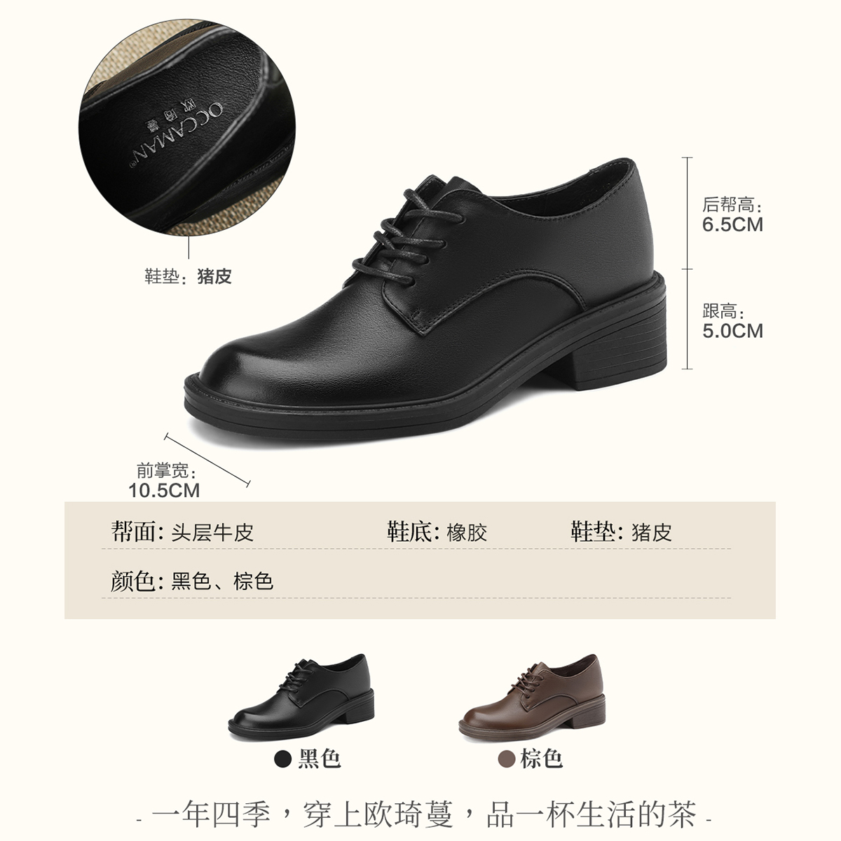 女2025夏季 深口单鞋 新款 百搭厚底休闲鞋 真皮 女鞋 复古英伦风小皮鞋