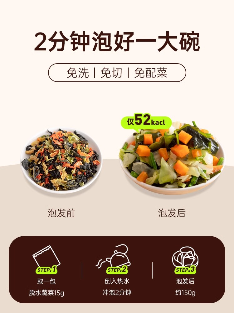 光合力量脱水蔬菜包泡面伴侣配菜万年青菜干混合减干菜即食脂300g