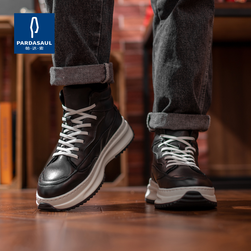 靴子 真皮防水厚底增高工装 森马马丁靴男秋季 高帮百搭休闲白色板鞋