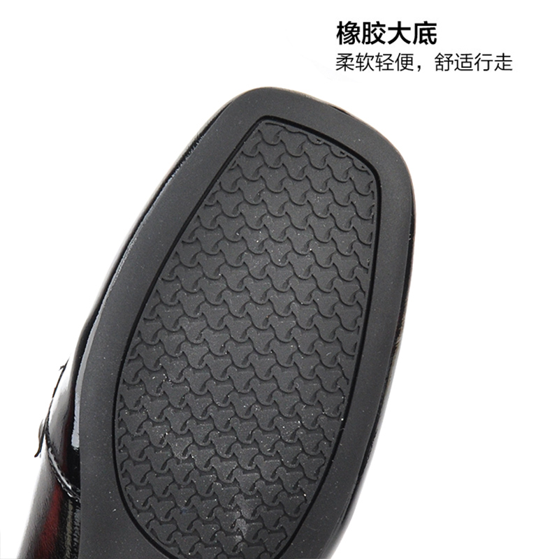 英伦风黑色方头方跟漆皮一脚蹬小皮鞋 意尔康中跟单鞋 女2023新款