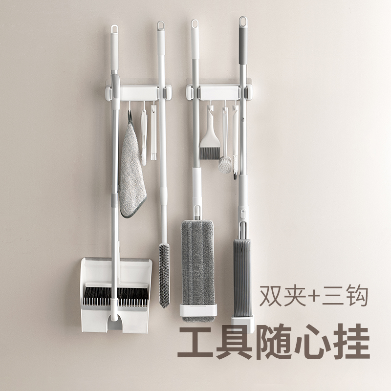 懒角落拖把壁挂夹挂钩收纳吸盘卫生间置物架浴室免打孔地拖布扫把