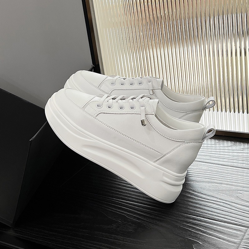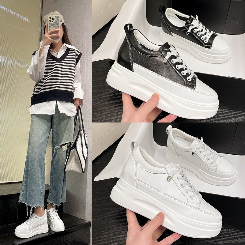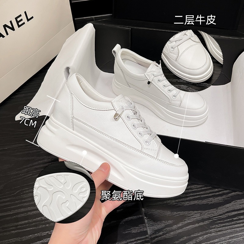 子 休闲厚底松糕跟坡跟透气潮鞋 网面小白鞋 女内增高7CM小个子新款