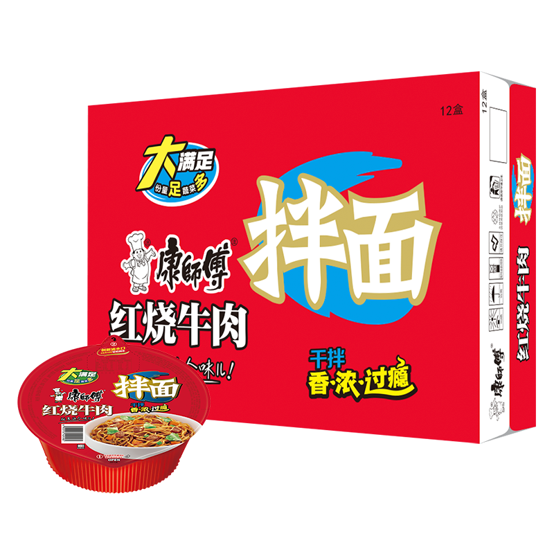 康师傅干拌面方便面12盒碗装 整箱批发红烧牛肉泡面速食夜宵旗舰店