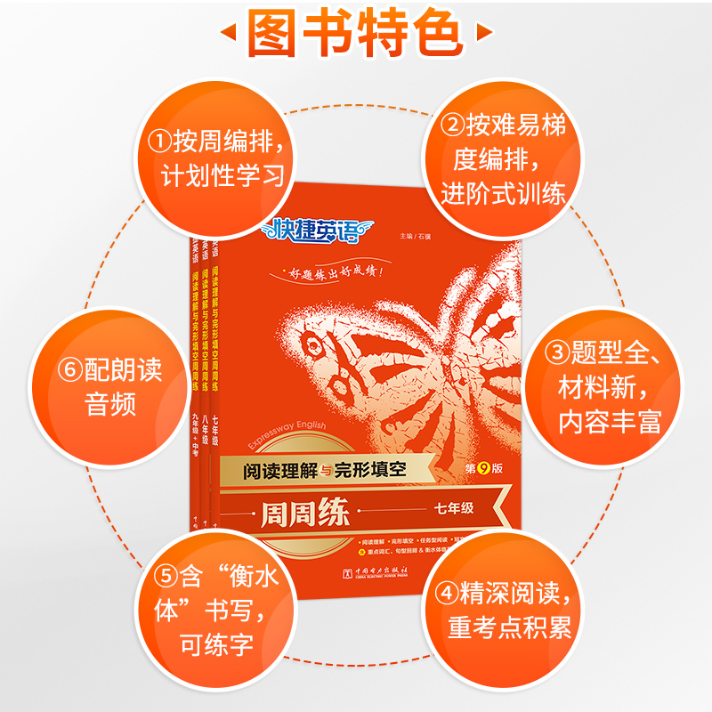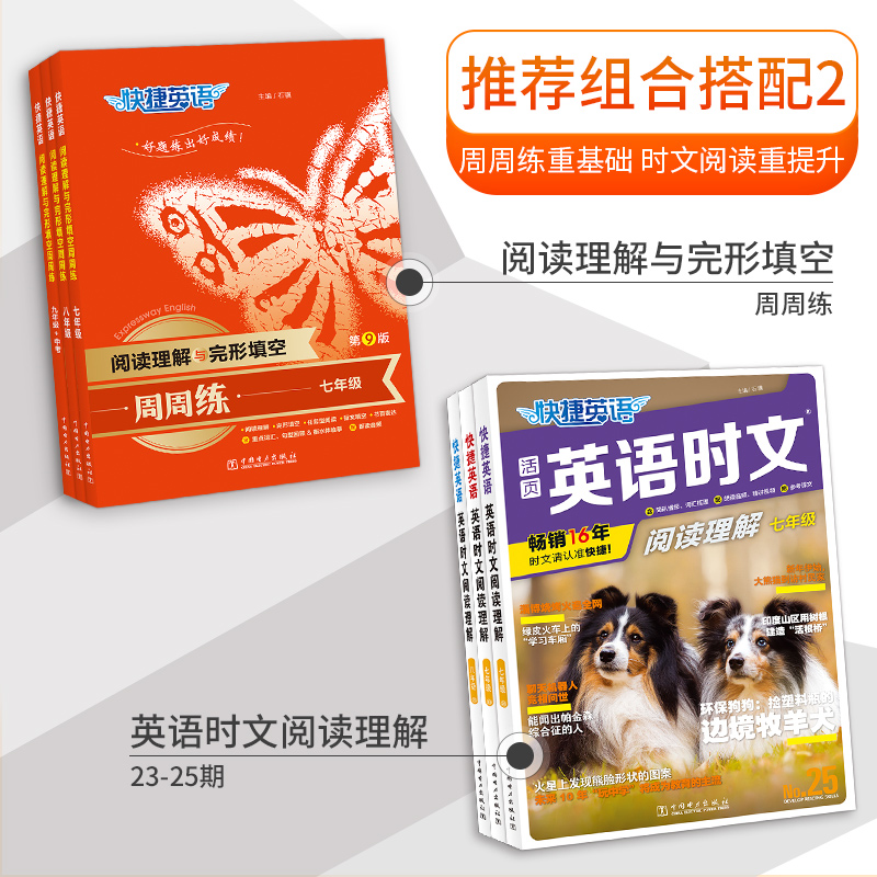 官方旗舰快捷英语阅读理解与完形填空周周练第9版 七八九年级上册下册中考高一二高考任务型阅读组合训练题初一初二初三复习练习册