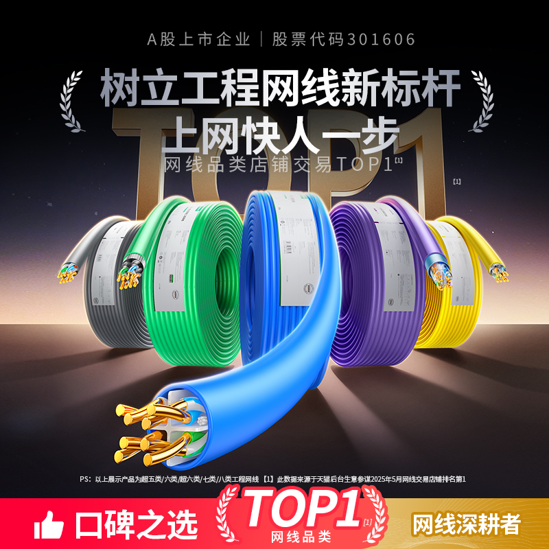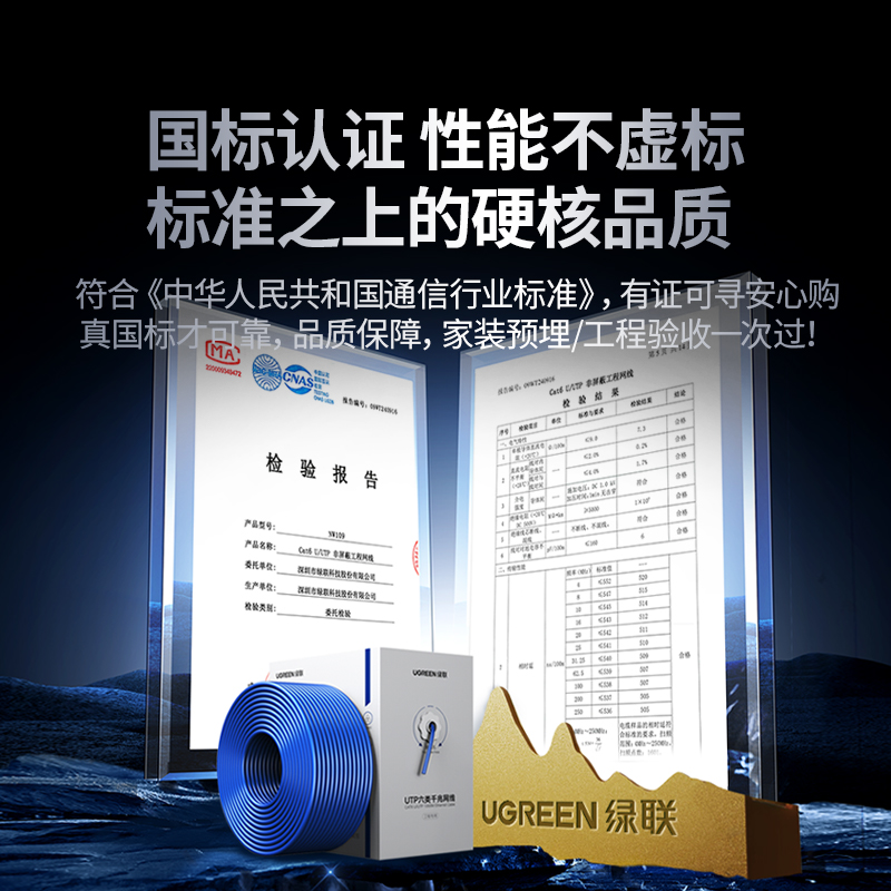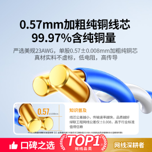 绿联网线千兆超六类6五国标双屏蔽整箱专用工程家装 poe网络监控米
