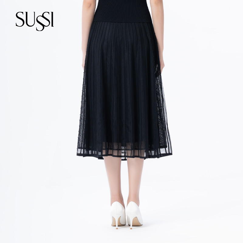 大摆纱裙裙子 新款 9230 两面穿星空百褶裙网纱半身裙春秋女中长款