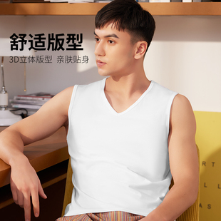 t恤全棉无痕汗衫 七匹狼纯棉白色背心男士 宽肩V领学生跨栏健身无袖