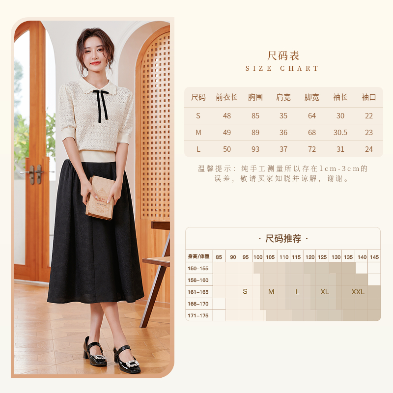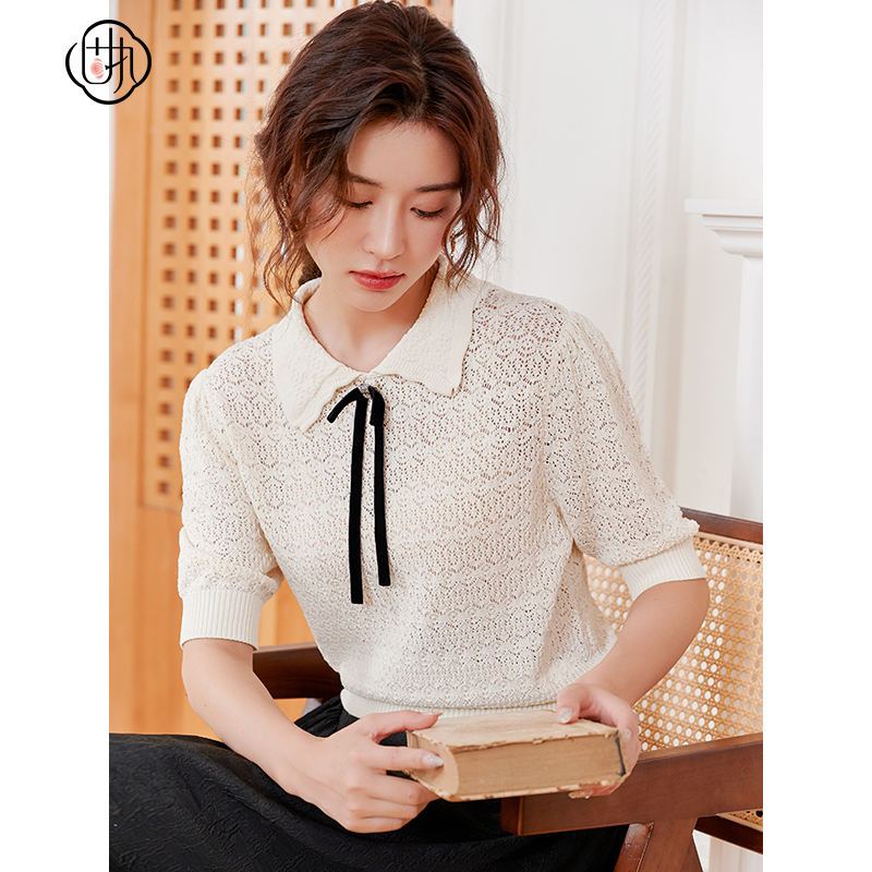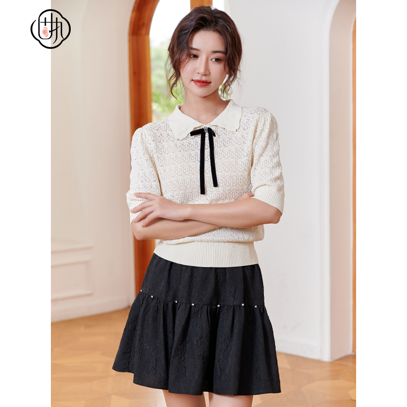 针织衫 固执夏季 薄款 学院风蝴蝶结娃娃领短袖 80131MY07950 新款