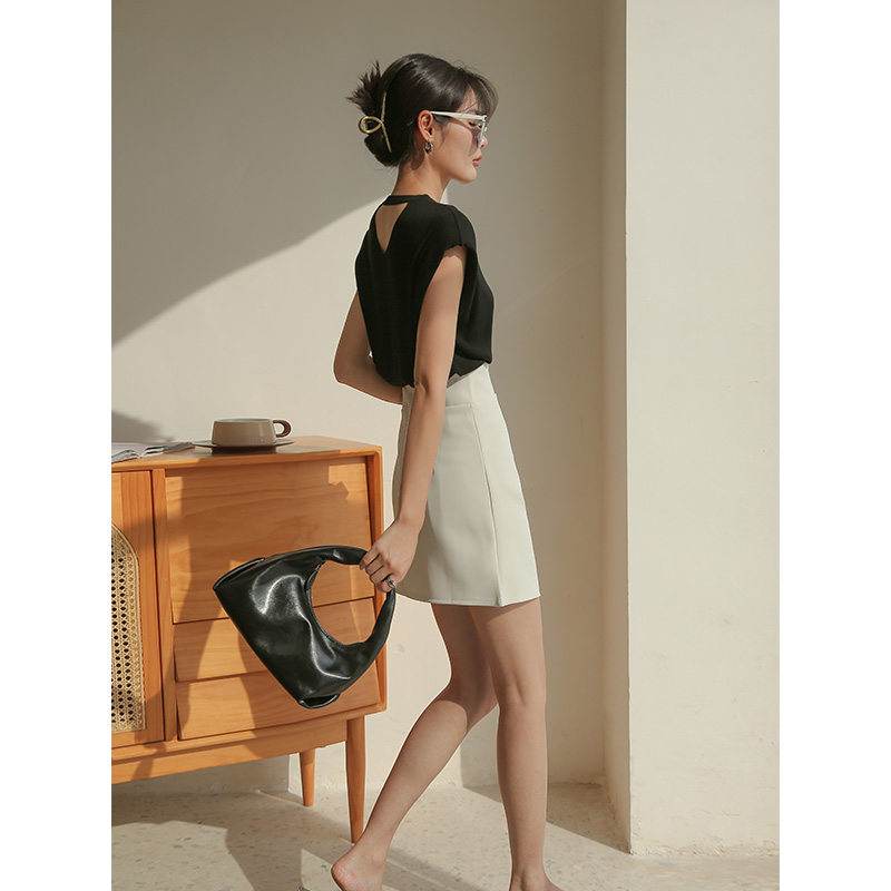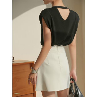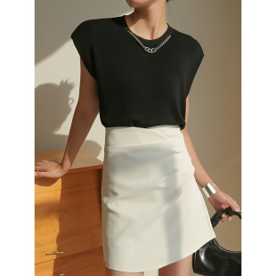 白色高腰褶皱半身裙女2025年夏季 不规则a字短裙高腰包臀裙子 新款
