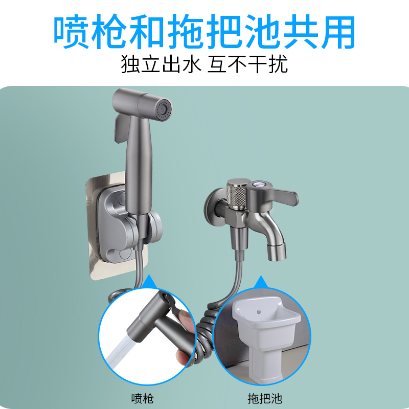 阳台拖把池水龙头带喷枪洗衣机卫生间家用一分二接头入墙一进二出