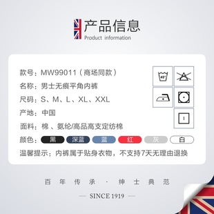百富 轻薄透气平角裤 商场款 无痕四角裤 MW99011 男棉内裤 BYFORD
