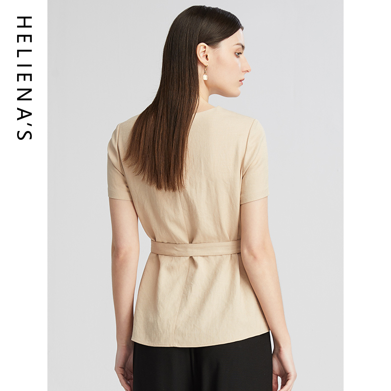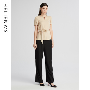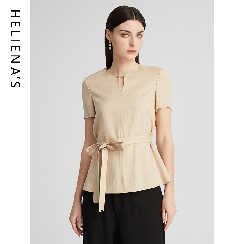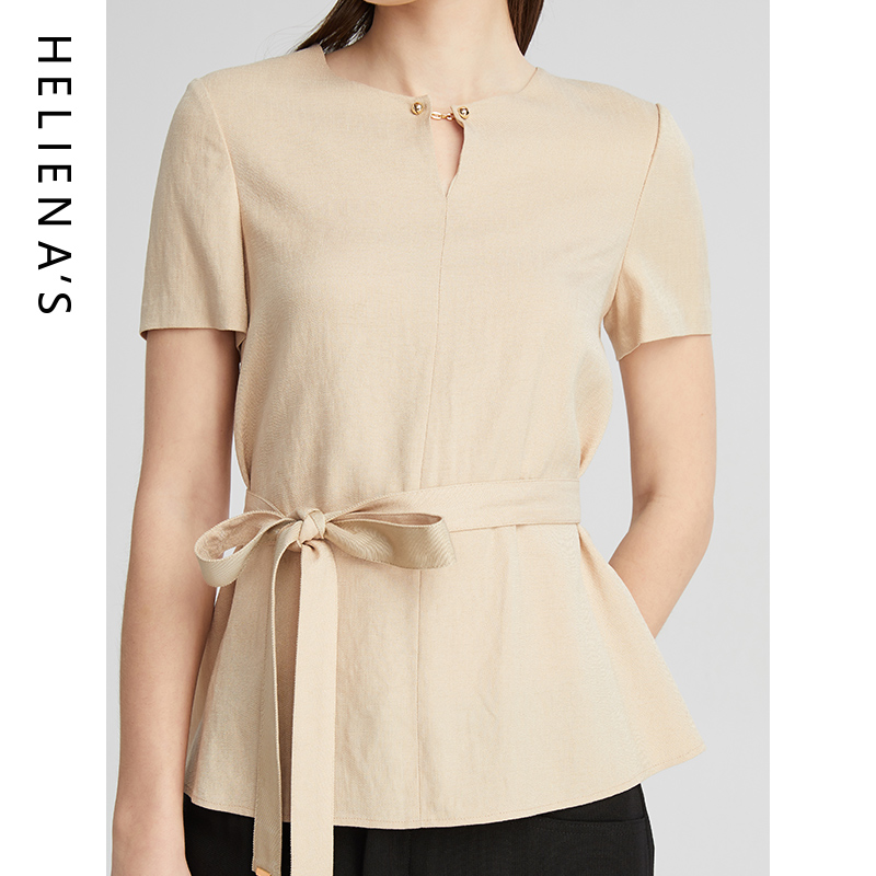 醋酸圆领短袖 夏季 套头T恤女士抽褶显瘦气质高级感 衬衫 海兰丝短袖
