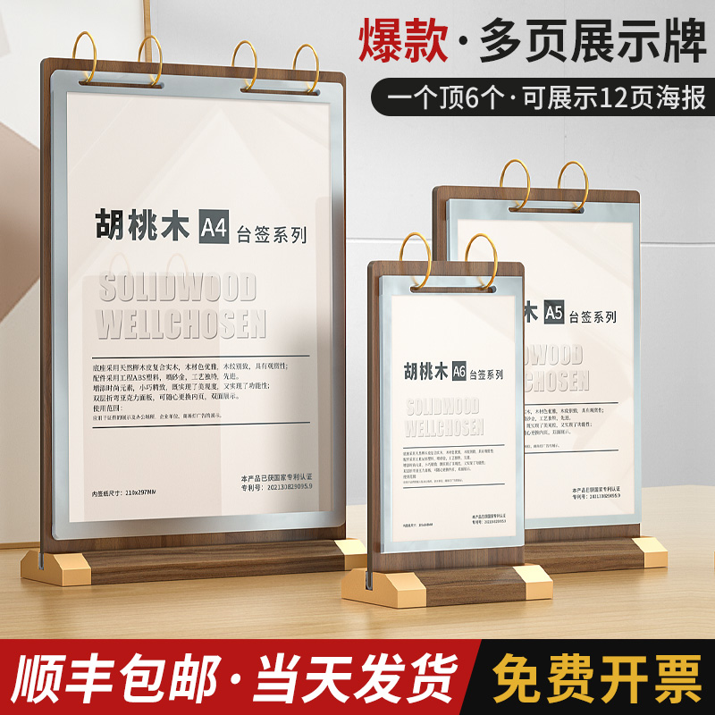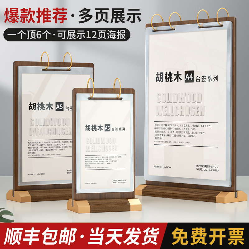 翻页台牌台卡展示牌桌面菜单a4立牌价格表价目架桌牌活页广告本木质相册餐桌点餐菜牌奶茶店酒水单可替换摆摊