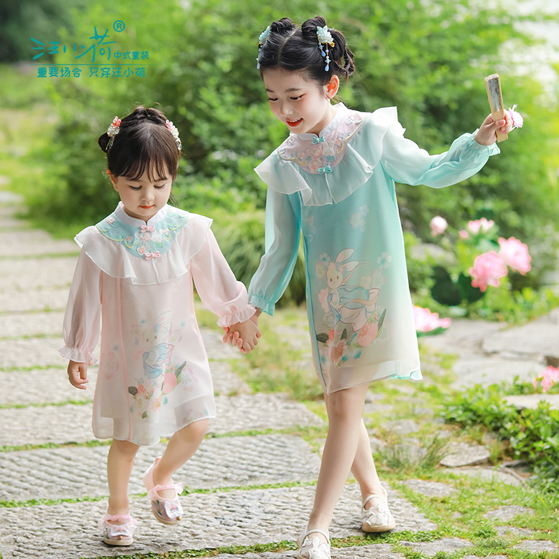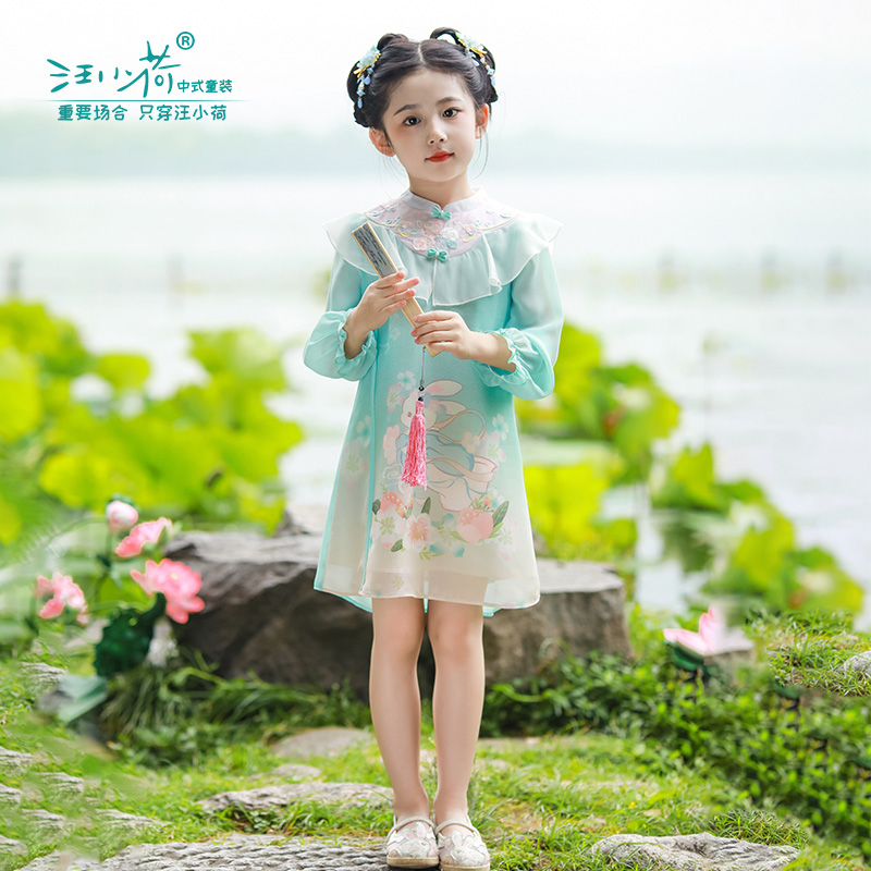 连衣裙超仙唐装 汪小荷童装 改良旗袍裙古风长袖 秋新款 汉服女童季