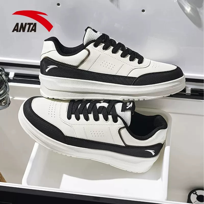运动鞋 秋季 黑白熊猫百搭男士 增高休闲鞋 安踏板鞋 皮面防水跑鞋 男鞋