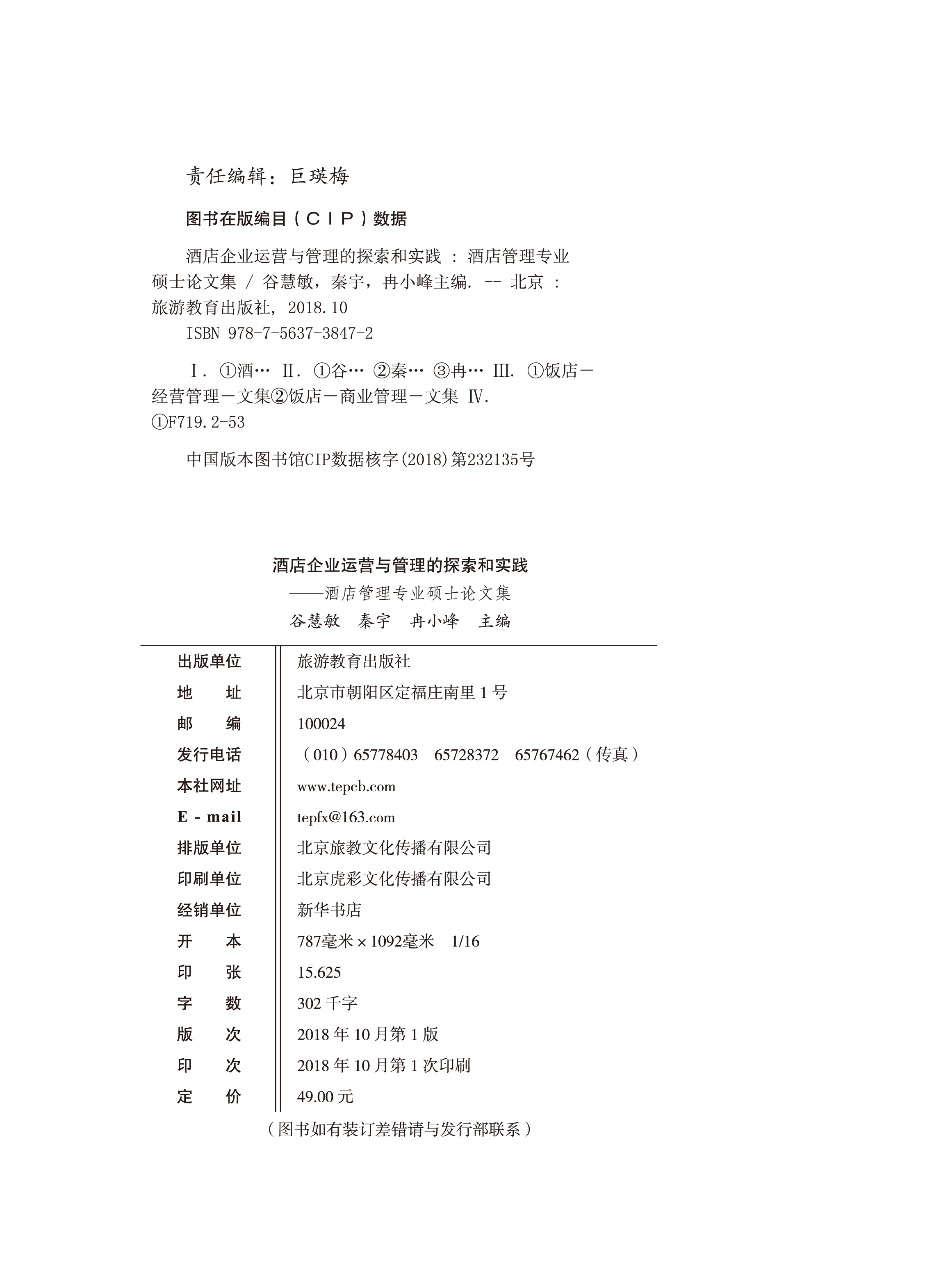 谷慧敏 9787563738472 秦宇 冉小峰 社 酒店企业运营与管理 主编旅游管理研究丛书旅游教育出版 探索和实践:酒店管理专业