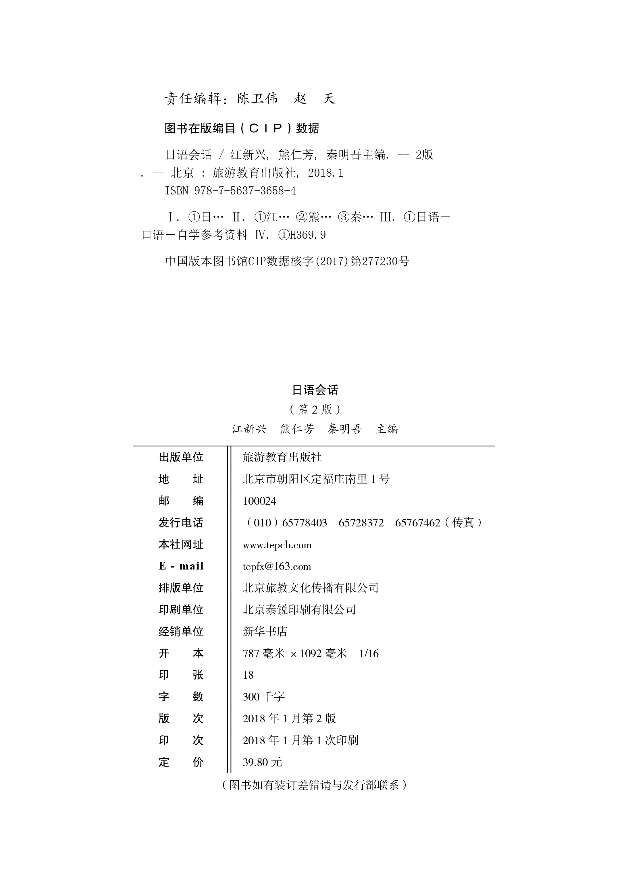 秦明吾主编9787563736584普通高等教育十一五规划教材 熊仁芳 北京第二外国语学院日语专业教师团队 江新兴 日语会话第2版