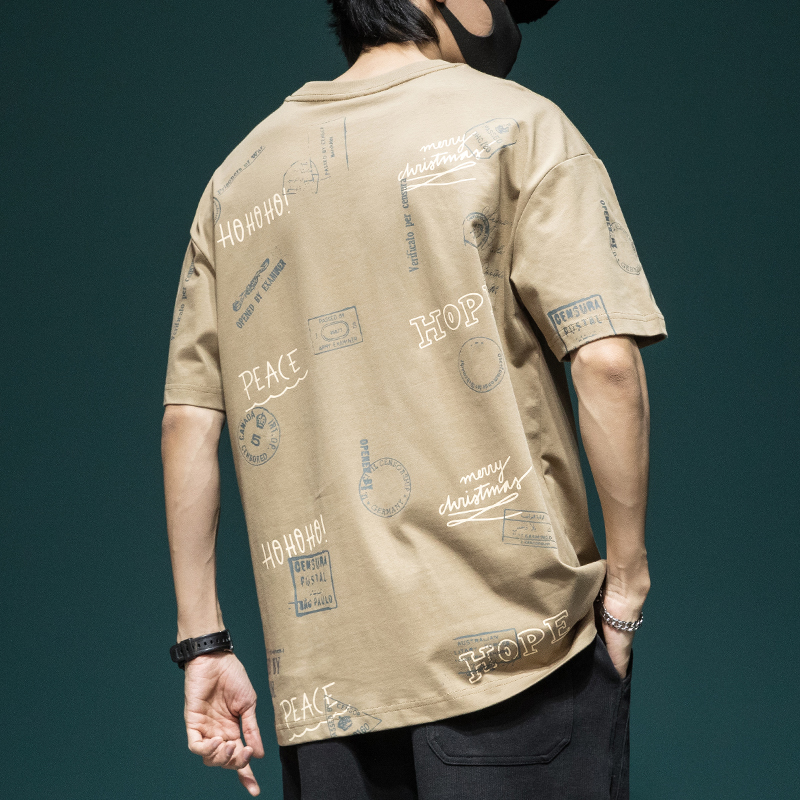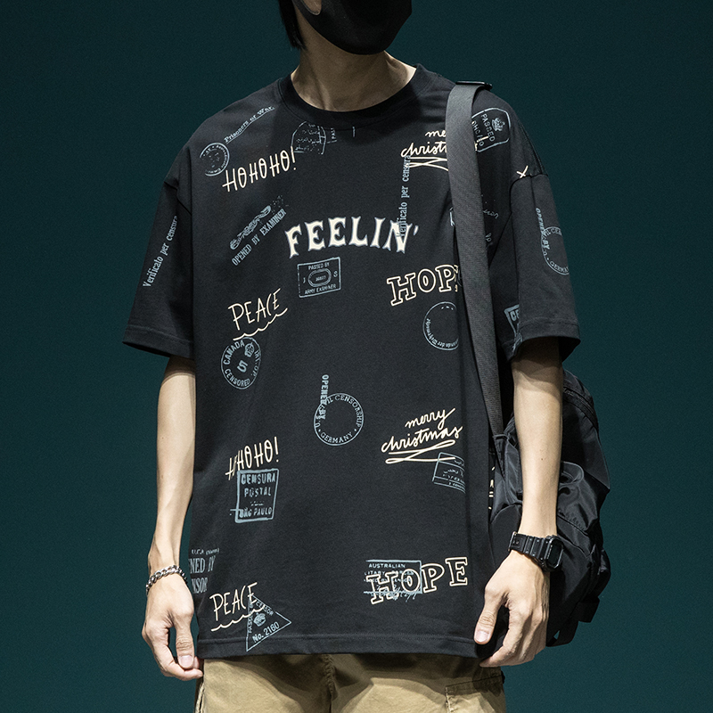 新款 复古满印短袖 纯棉半袖 ins潮牌宽松大码 纯棉圆领体恤 t恤男夏季