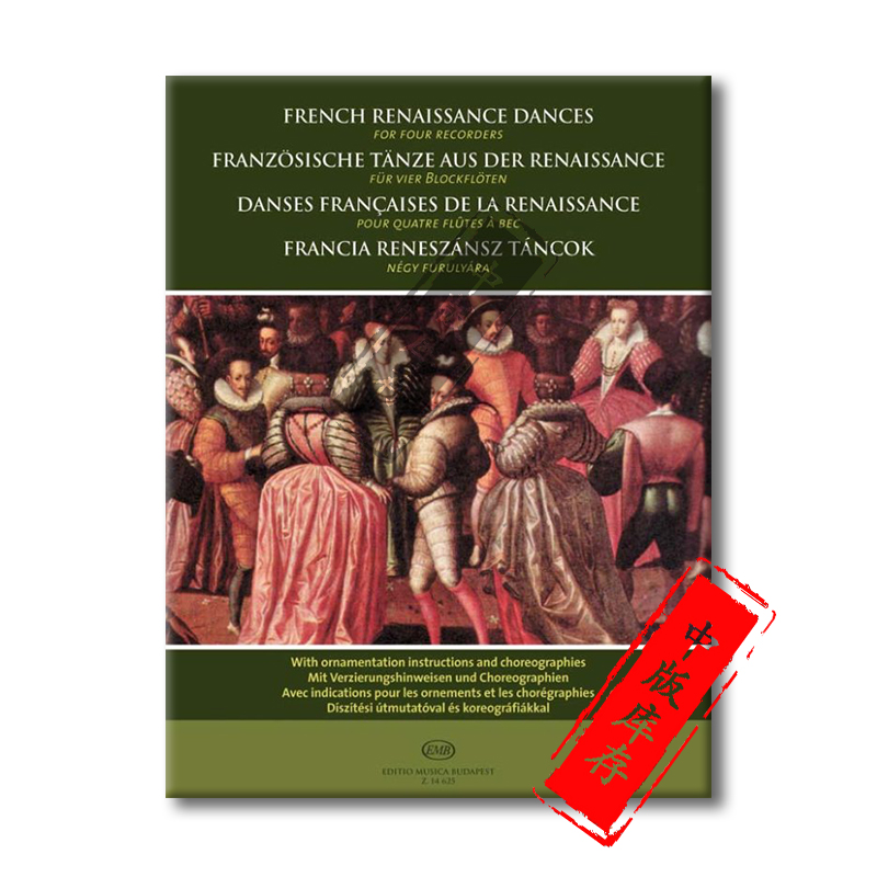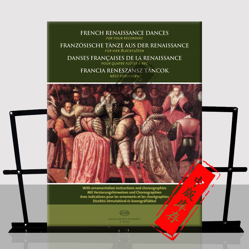 four Z14625 布达佩斯原版 Renaissance Dances French 总分谱 进口乐谱书 recorders 法国文艺复兴舞曲 for 四支竖笛