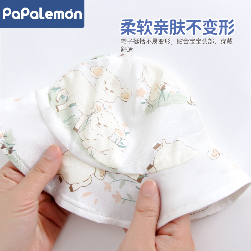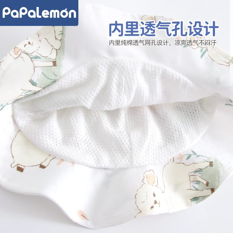 婴儿太阳帽外出纯棉防晒可爱渔夫帽 宝宝遮阳帽子夏薄款 冰蚕棉