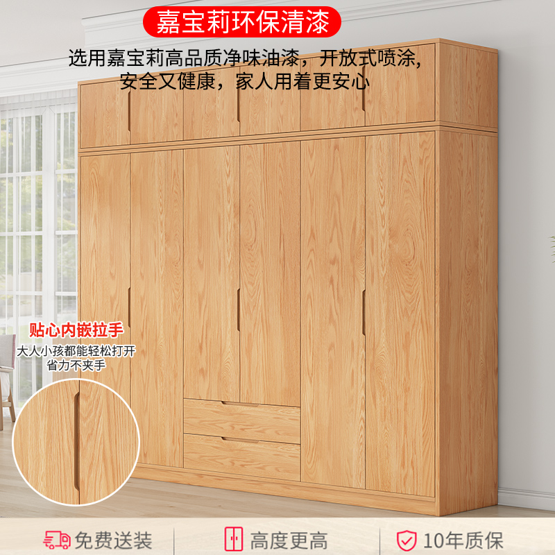 美克美家实木落地独立衣柜法式 轻奢家用原木顶柜卧室家用储物家具