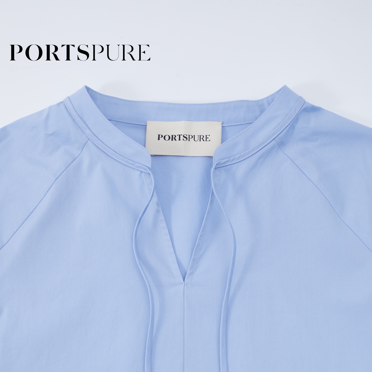优雅V领系带棉感衬衫 2025早秋新品 宝姿PORTSPURE女装 商场同款