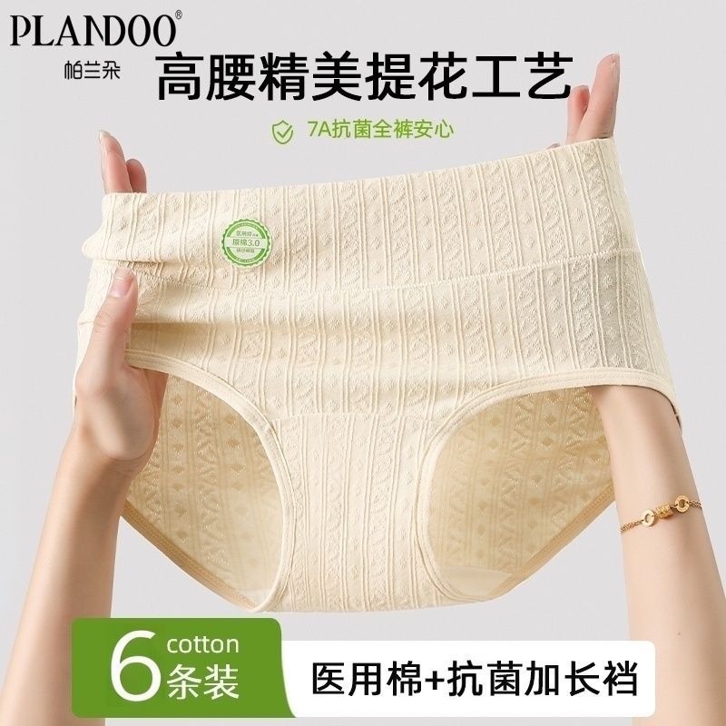 大码 提臀三角裤 女生 女士纯棉抗菌全棉裆高腰收腹2025新款 猫人内裤