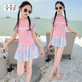 泳装 泳衣洋气分体游泳衣女孩中大童学生夏装 女童夏季 玉婴坊新款