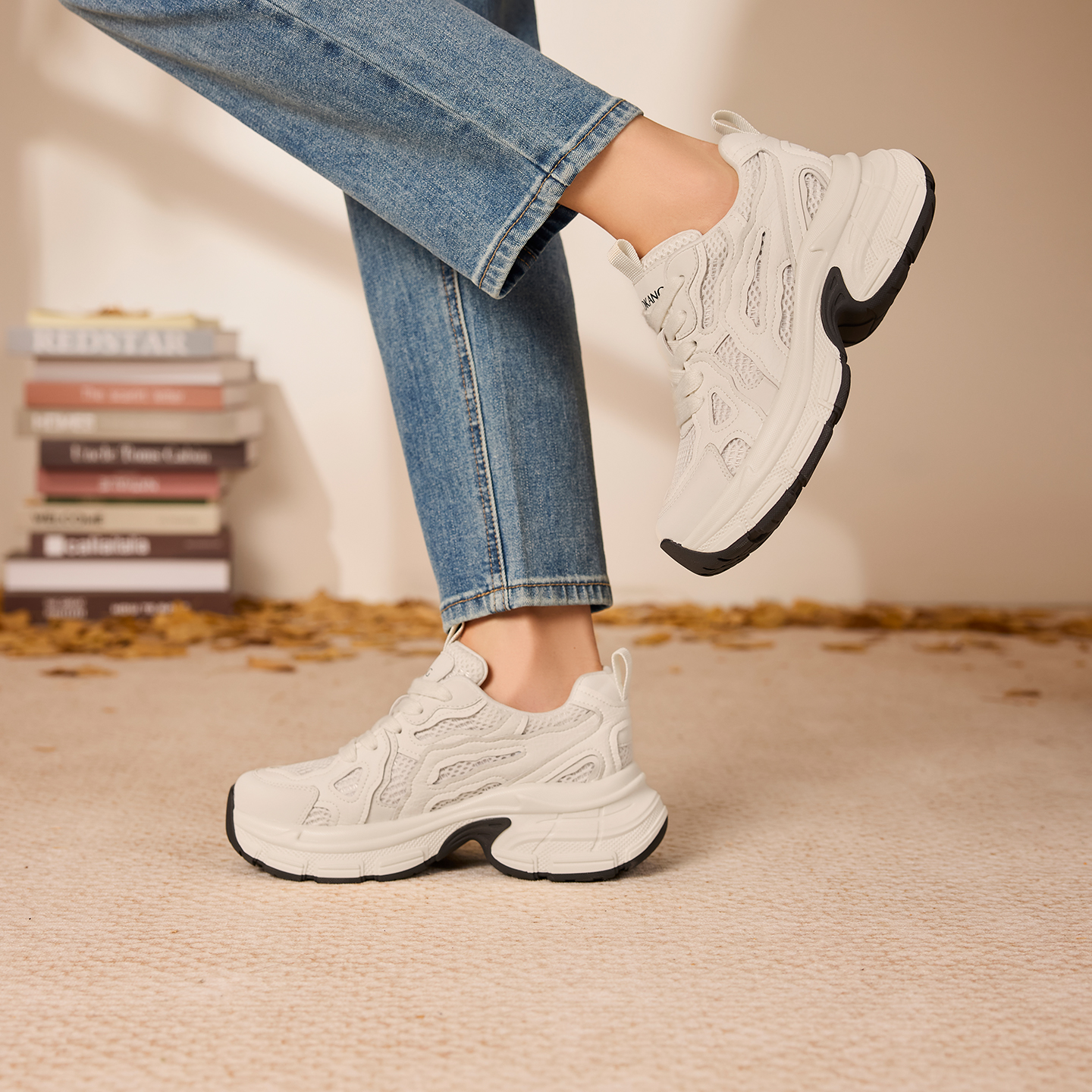 透气网面运动休闲跑步厚底增高网红超火小白老爹潮鞋 森马女鞋 秋季