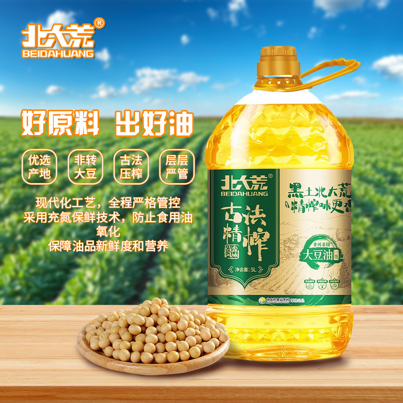 北大荒非转基食用油因古法精榨一级大豆油5L家庭版 炒菜 桶装
