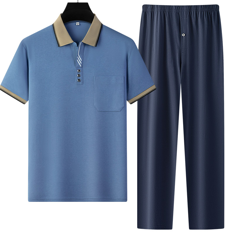 款 夏季 套装 爸爸短袖 父亲节商务休闲服 申本中年男士 t恤长裤 POLO衫