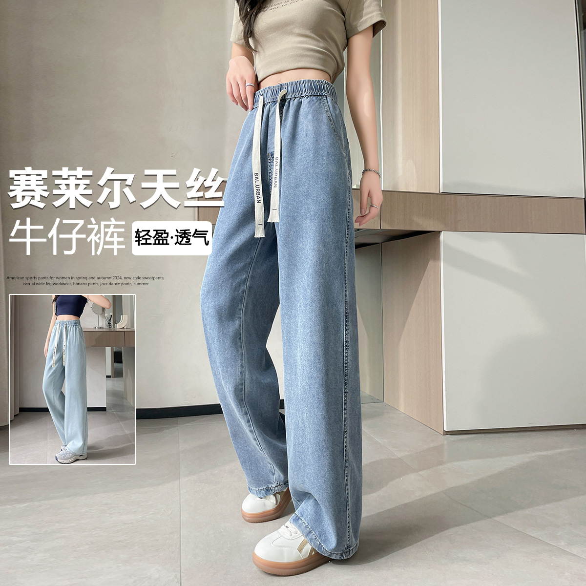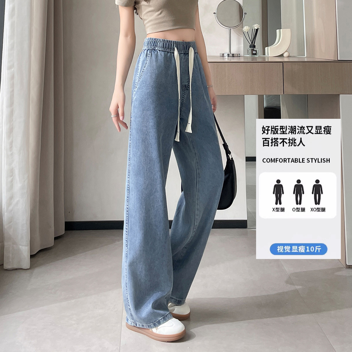 简约水洗高腰显瘦阔腿长裤 牛仔裤 百搭女式 班尼路轻薄莱赛尔经典