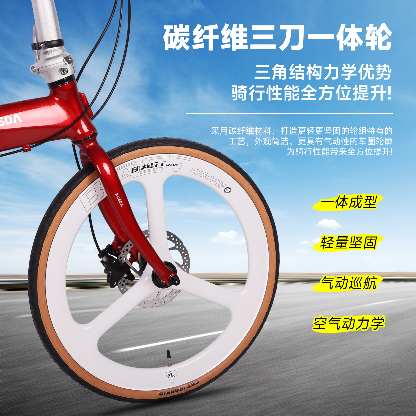 KOSDA折叠车自行车碳纤维轮组451碳刀轮超轻便携成人变速油压碟刹