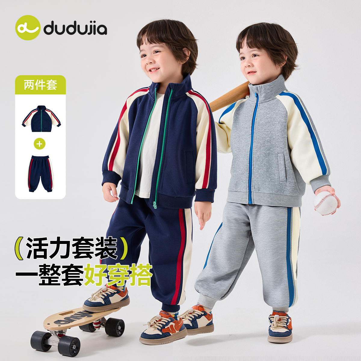 新年红卫衣运动套装 ER条纹撞色开衫 校园风运动服定制 明星同款