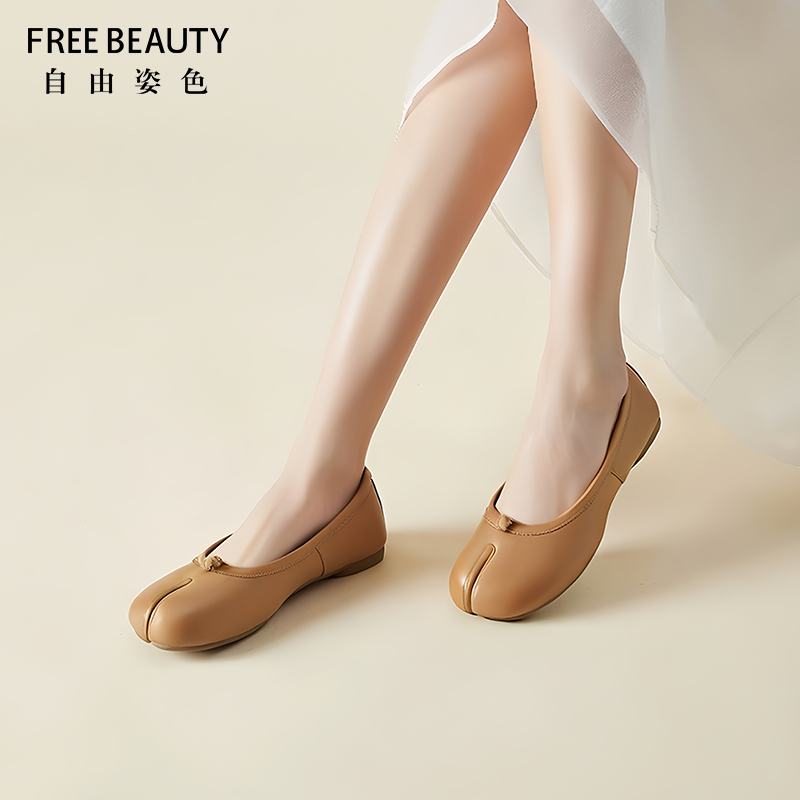 秋季 红色平底鞋 芭蕾法式 浅口婚鞋 达芙妮羊皮单鞋 豆豆鞋 女2025新款