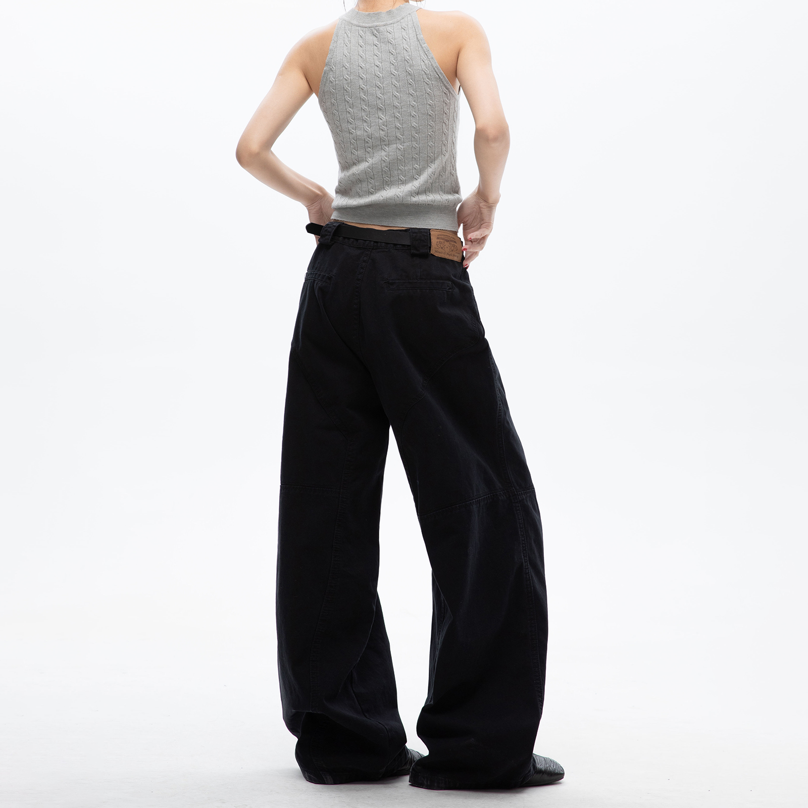 宽松长裤 女25春秋新款 BDS1KD0474 不规则破洞牛仔裤 播商场同款