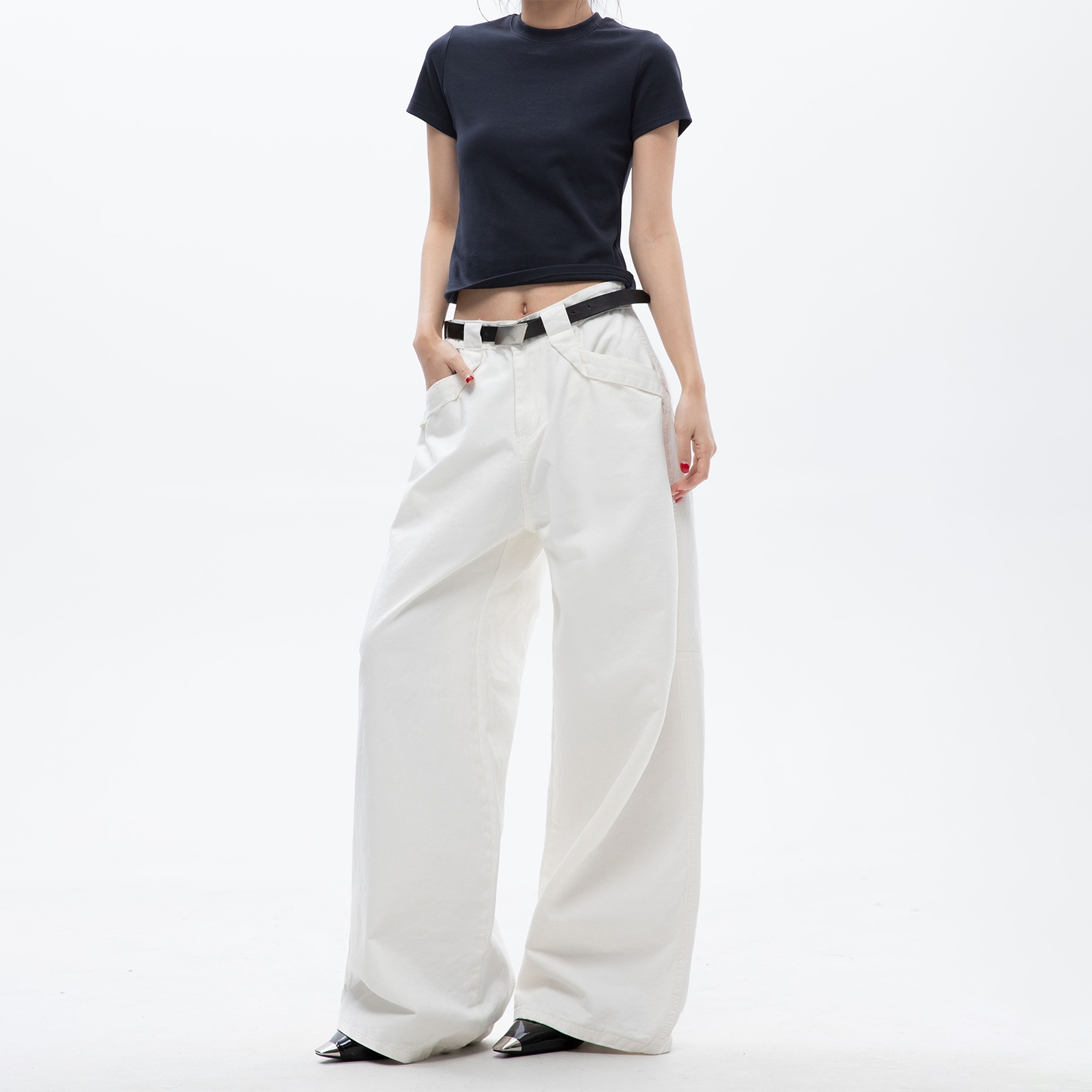 高腰梨形遮肉显瘦垂感直筒裤 高级感白色弯刀阔腿牛仔裤 女春秋新款