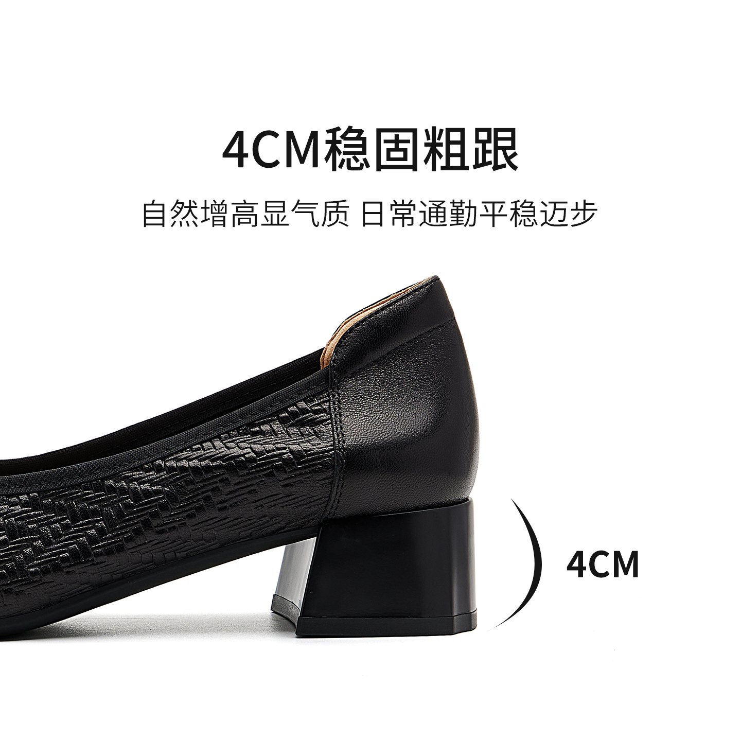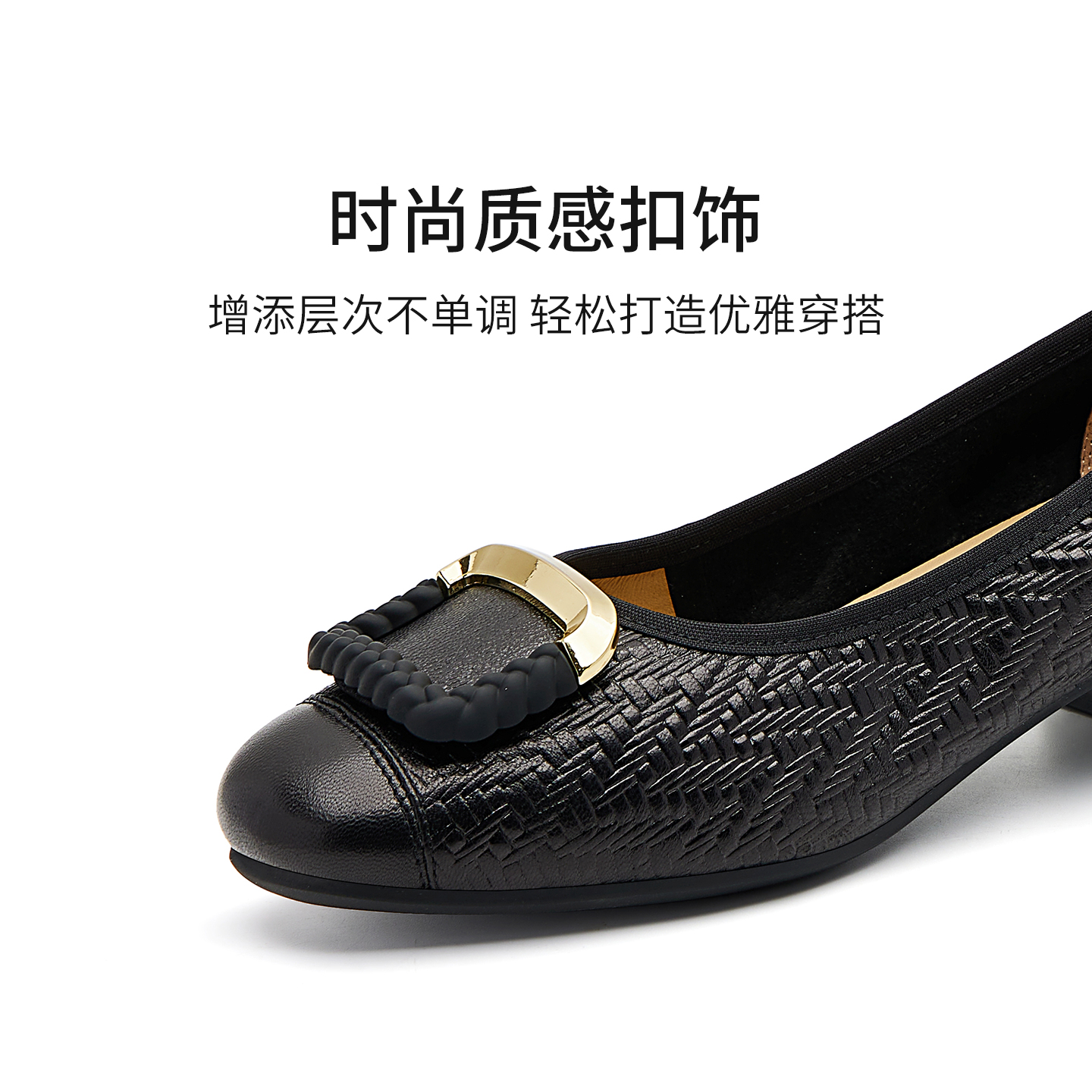 女2025秋HWL250117 通勤上班浅口单鞋 哈森时尚 饰扣中粗跟百搭经典
