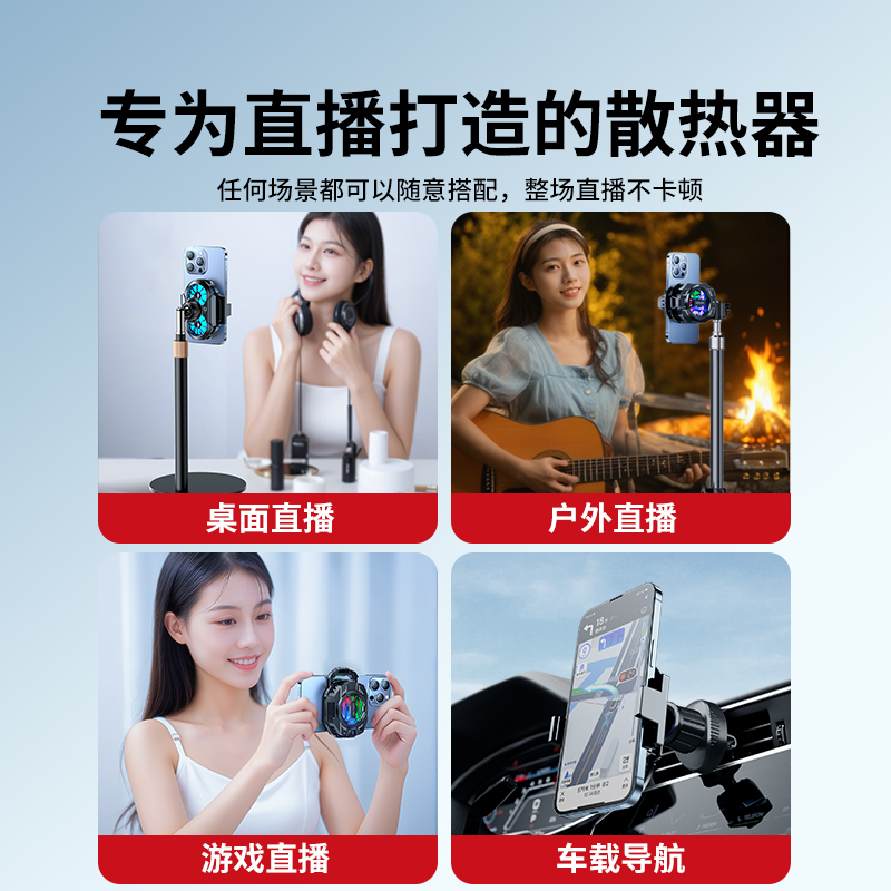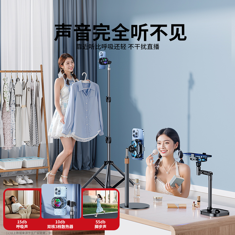 手机散热器超静音半导体制冷降温神器主播打游戏背夹冷却结冰适用黑鲨苹果一加落地直播支架 直播专用