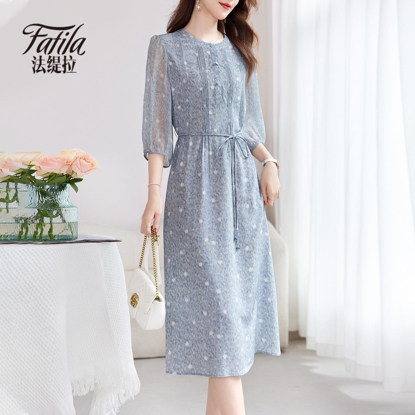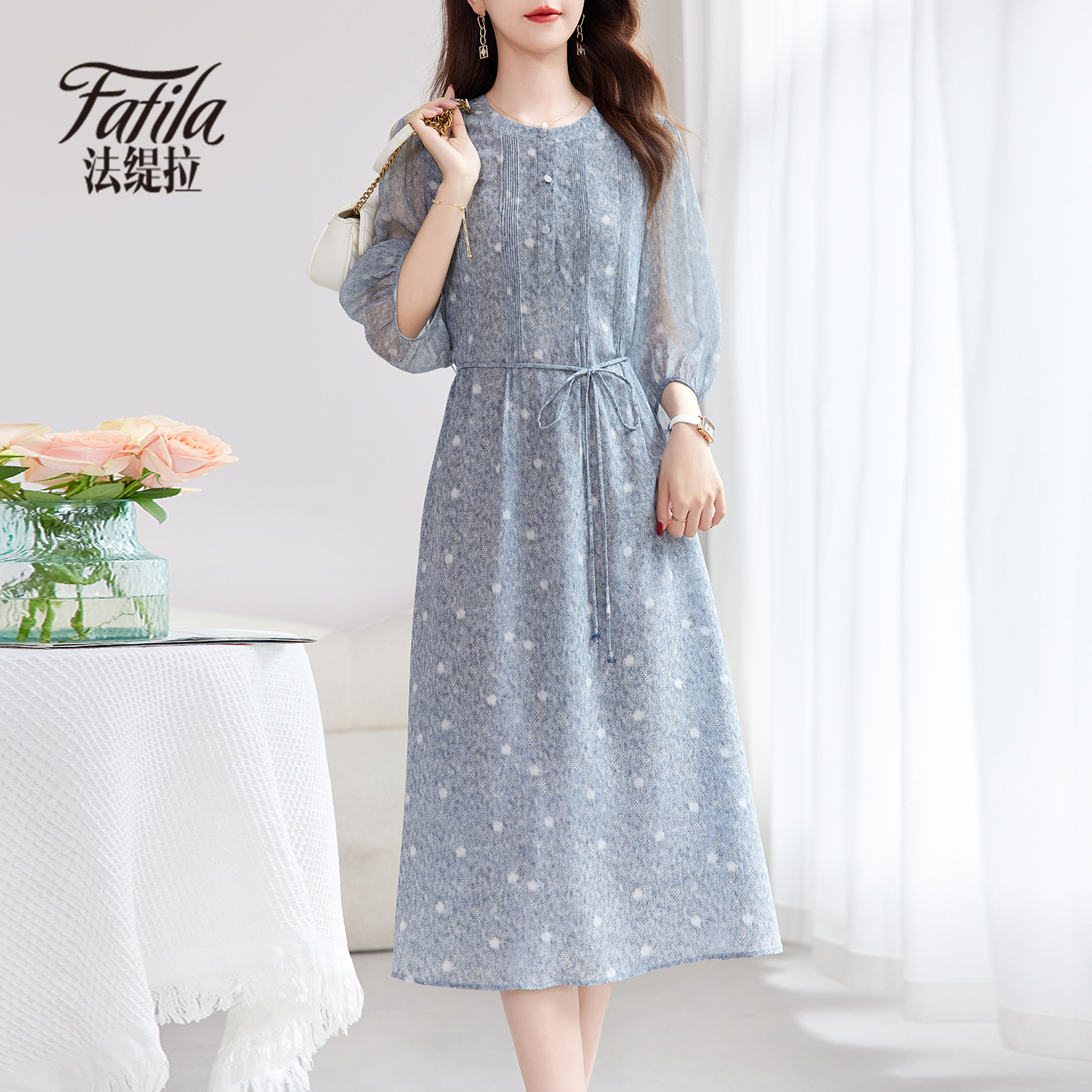 长袖 时尚 辣妹风收腰裙 欧美小众晕染印花拼接连衣裙2025新款 秋季