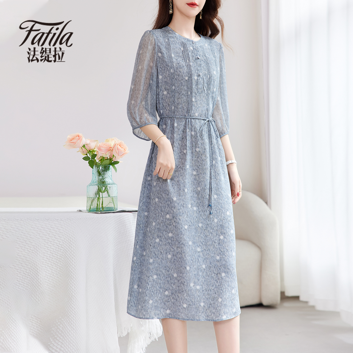 法式 2025年新款 温柔风收腰显瘦长裙 连衣裙女夏季 超仙气荷叶边短袖