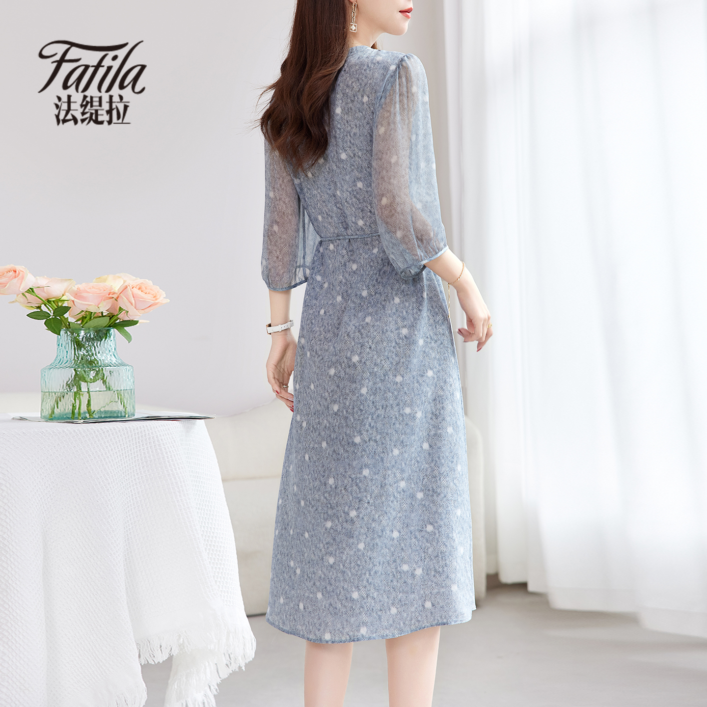 长裙 黑色裙子设计感秋装 a02假两件拼接碎花连衣裙女2025新款 秋季