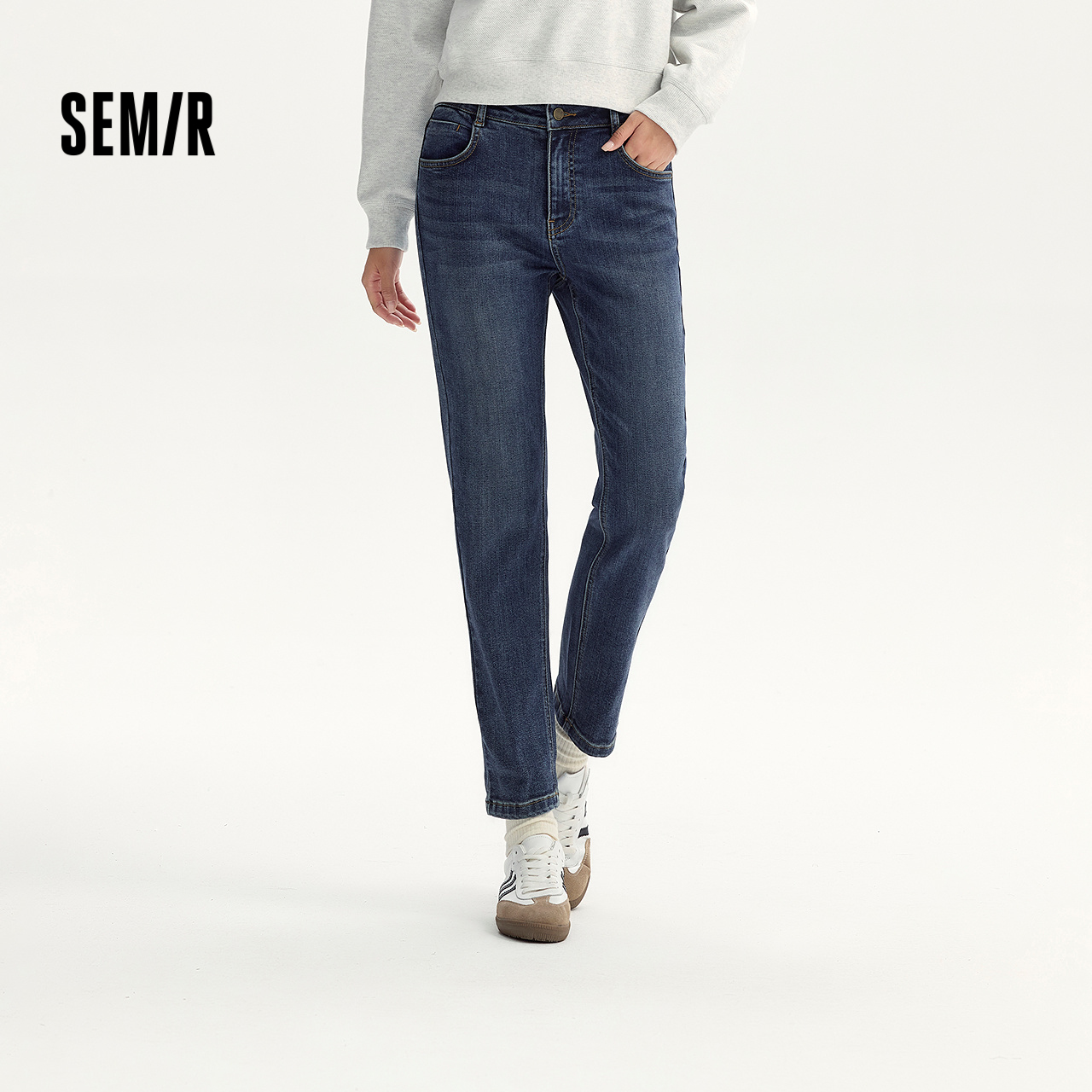 时尚 森柔牛仔 女士潮流秋休闲简约小直筒裤 女磨毛长裤 森马牛仔裤
