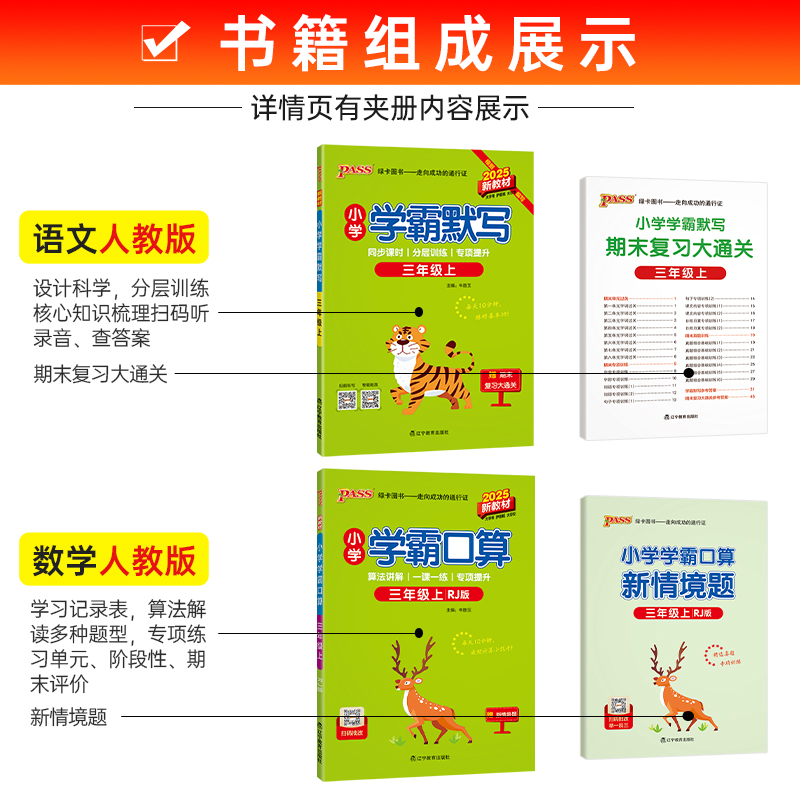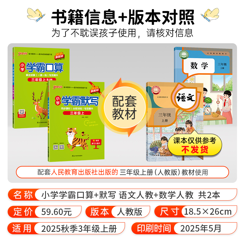 AI智能批改扫码 当当网 小学学霸默写口算三年级上册语文数学人教北师青岛版 新版 听写计算专项训练同步练习心算巧算练字 2025秋季