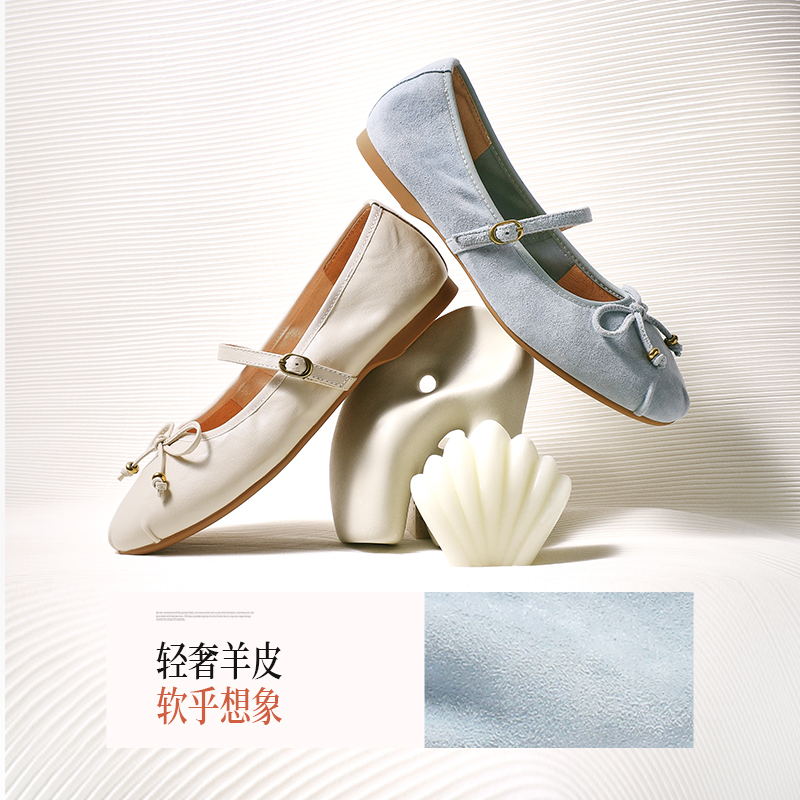 浅口单鞋 婚鞋 子B2783CQ5 女25新款 百丽芭蕾红色平底羊皮玛丽珍鞋