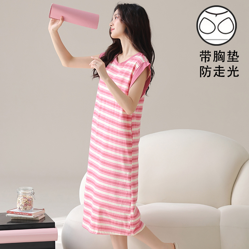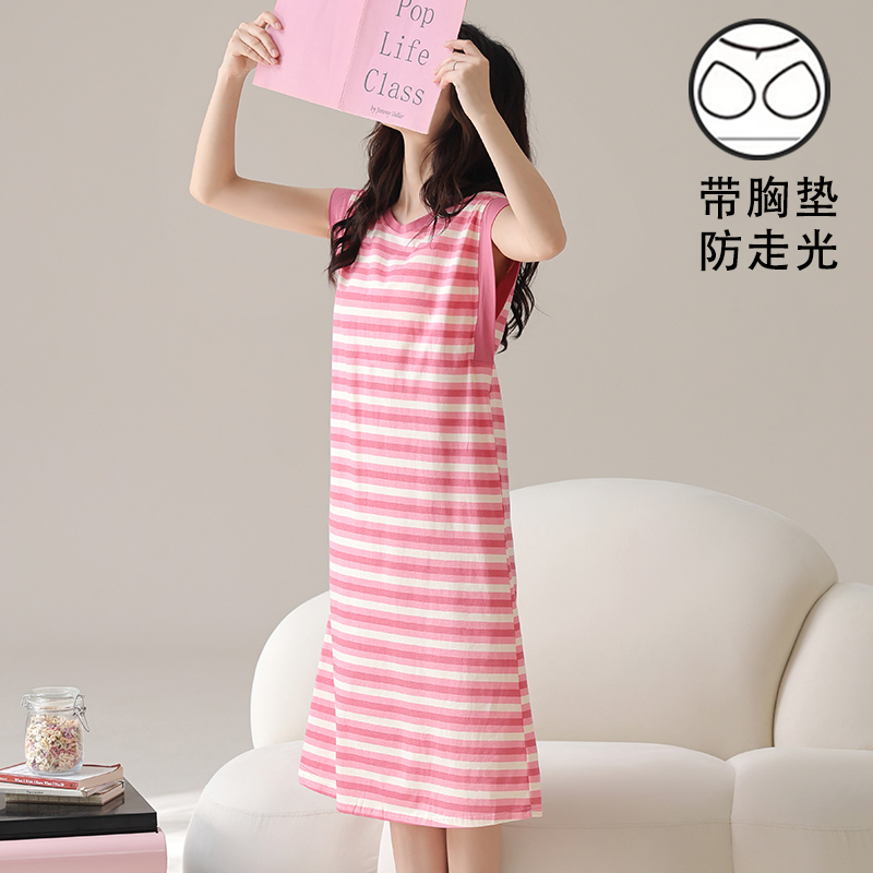 睡裙女夏带胸垫一体2025新款 睡衣背心长裙家居服可外穿防凸点薄款