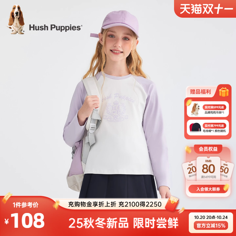 新款 暇步士童装 25秋季 圆领衫 大童休闲儿童拼色打底T恤 女童长袖