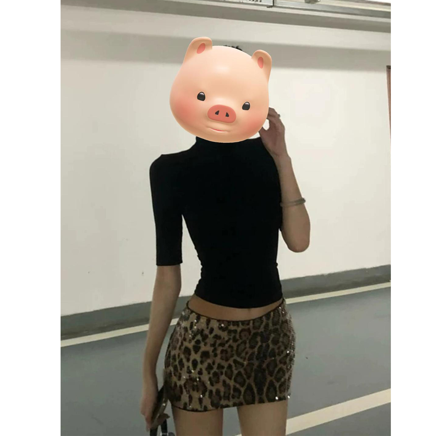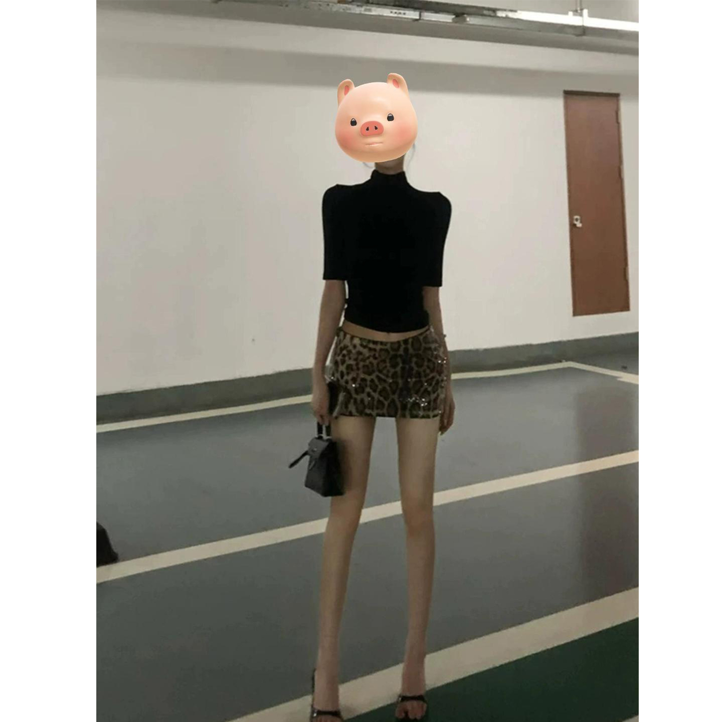 女25年夏辣妹豹纹包臀裙套装 XZY 打底衫 微透半袖 微胖御姐气质修身